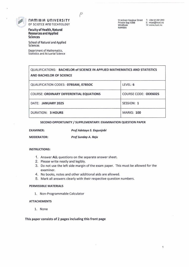 SECOND OPPORTUNITY/ SUPPLEMENTARY: EXAMINATION QUESTION PAPER