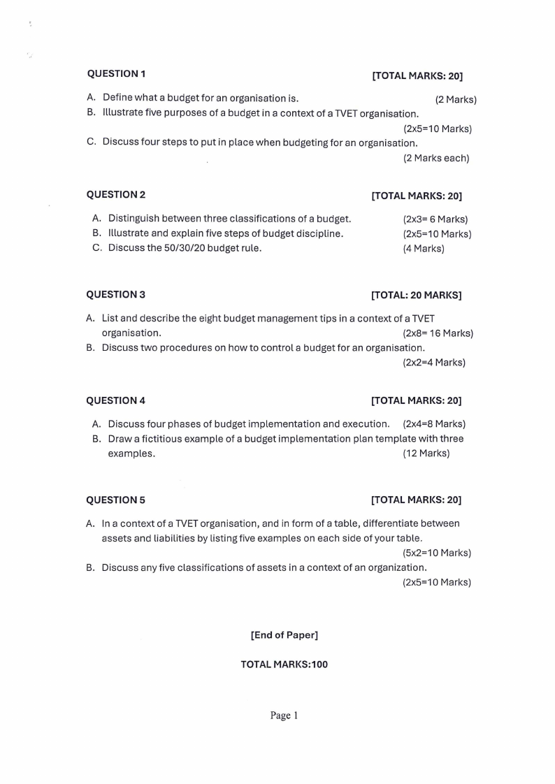 B. Illustrate five purposes of a budget in a context of a TVETorganisation.