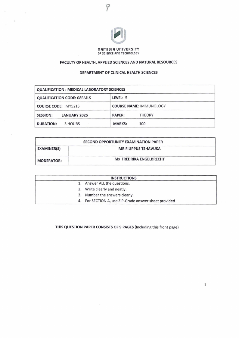 IMY521S - IMMUNOLOGY - 2ND OPP - JANUARY 2025 |