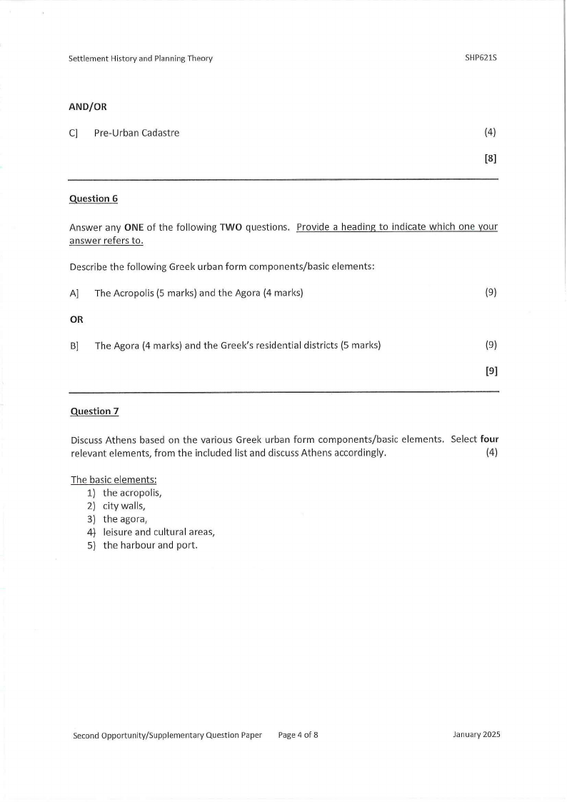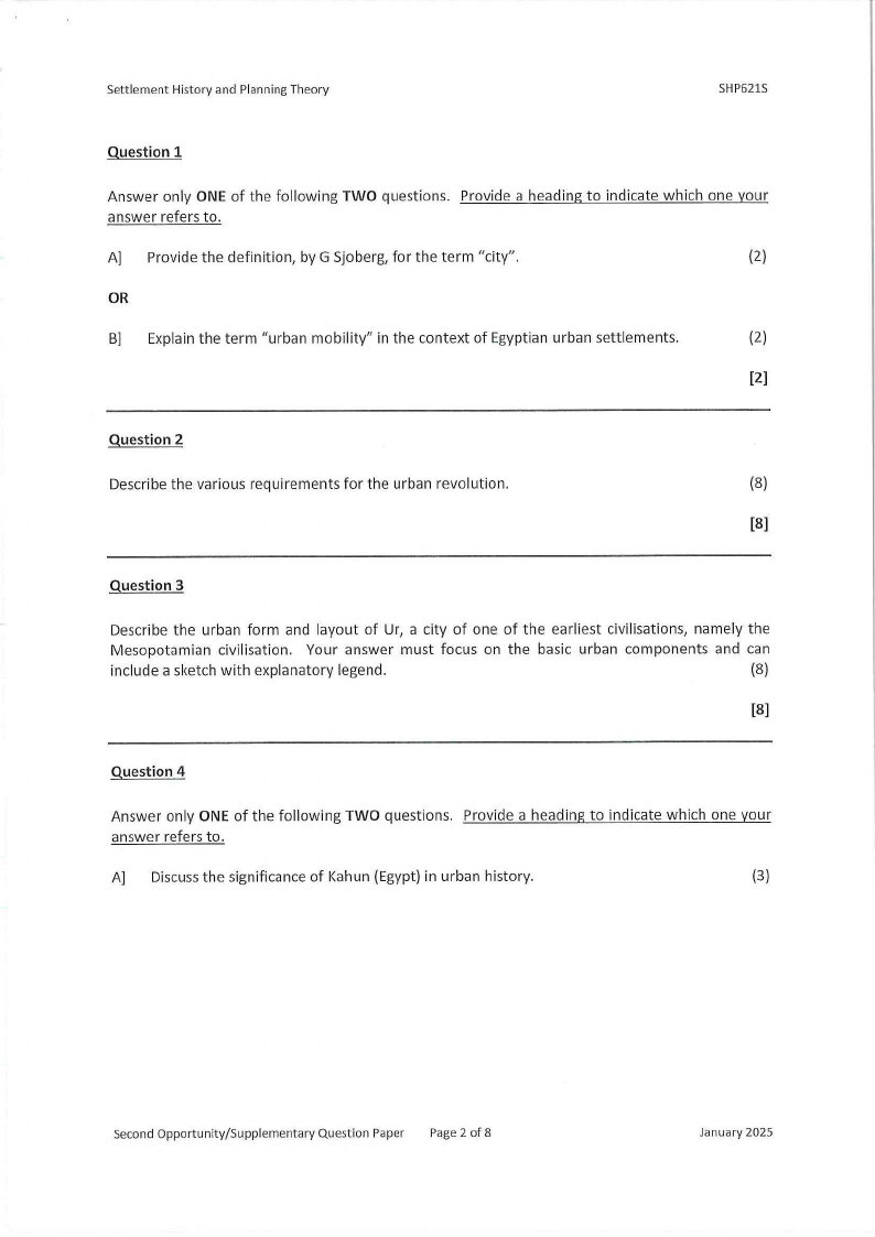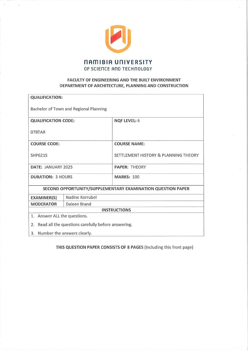SHP621S - SETTLEMENT HISTORY AND PLANNING THEORY - 2ND OPP - JAN 2025 |
