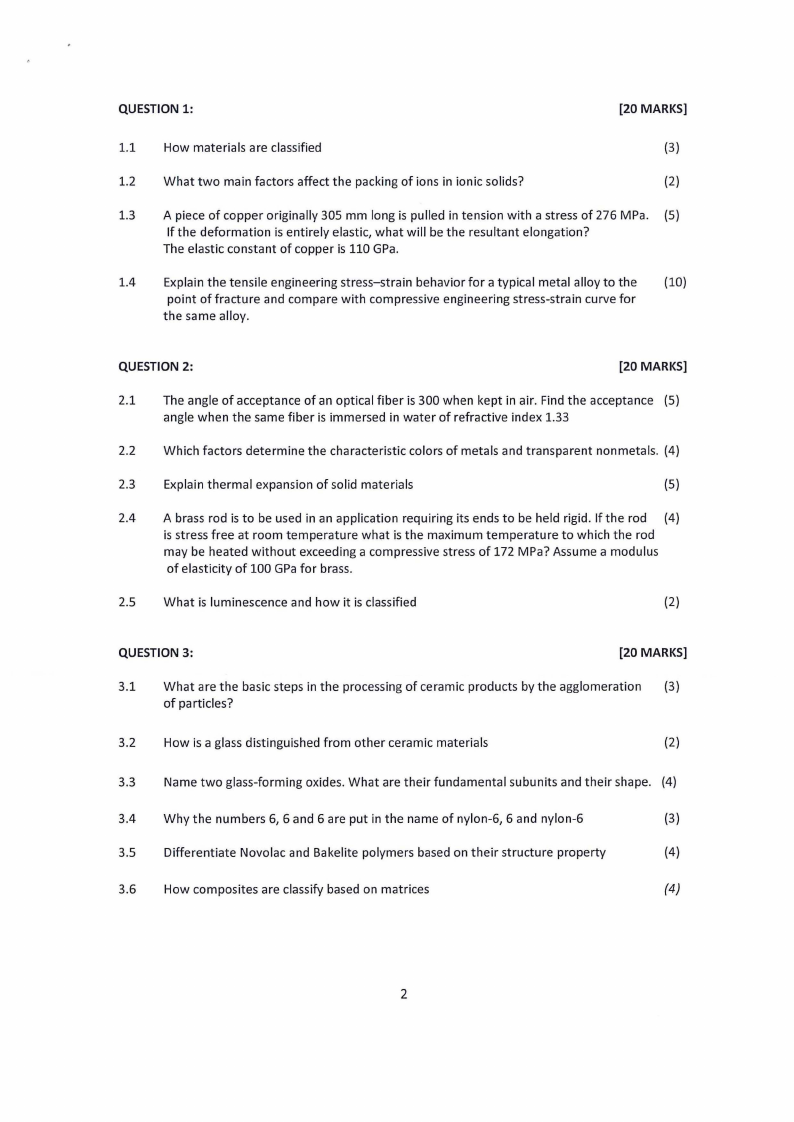 2.1 The angle of acceptance of an optical fiber is 300 when kept in air. Find the acceptance (5)