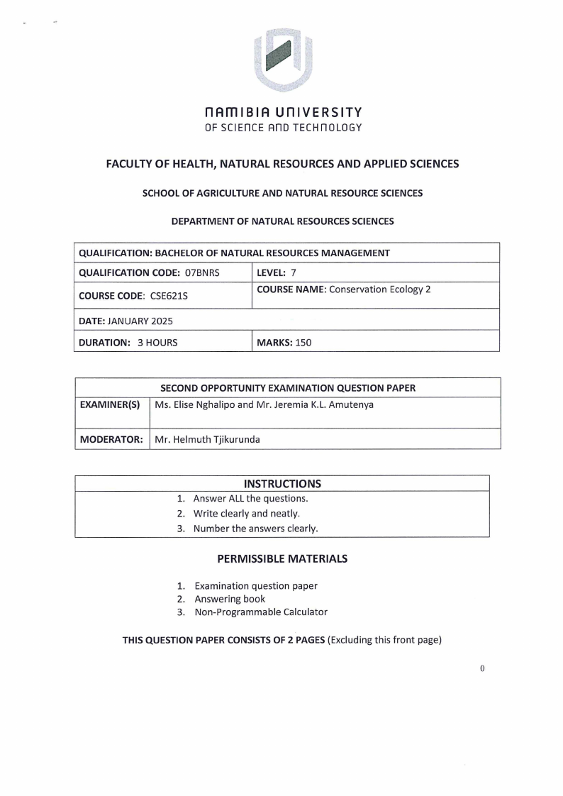 5.2 A population of 50 sable was introduced into Waterberg National Park. In the first (12)