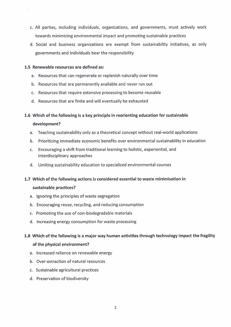 1.3 Which of the following is NOT a recommended action to reorient education for sustainable