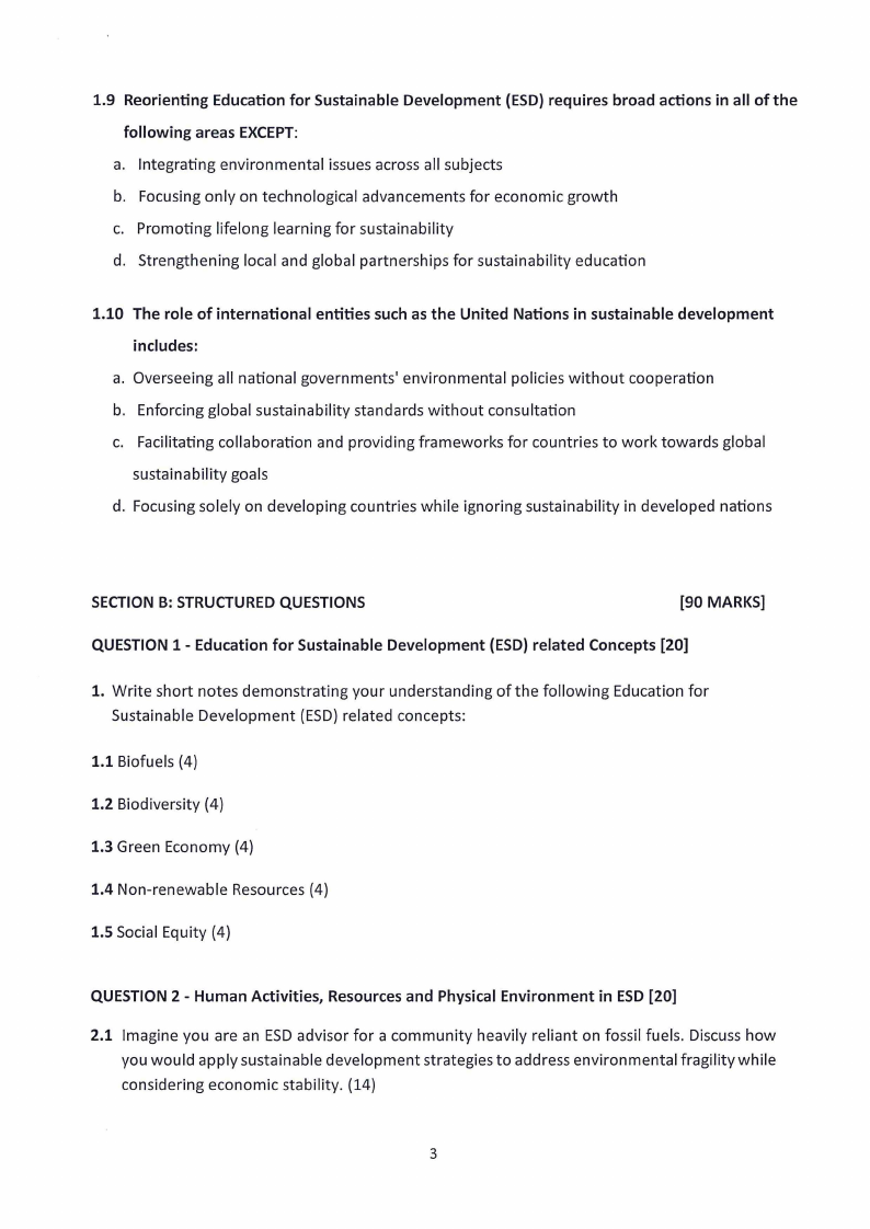 1.2 Education for Sustainable Development (ESD) across the curriculum primarily aims to: