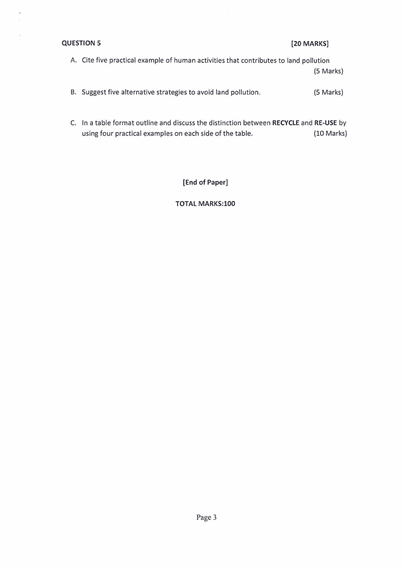 D. Apart from Nitrogen, list any five substances that can pollute clean water. {5 Marks)
