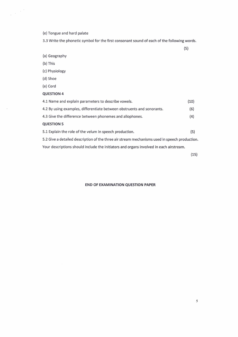 (e) Phonation is the process that deals with the various types of sounds that are produced