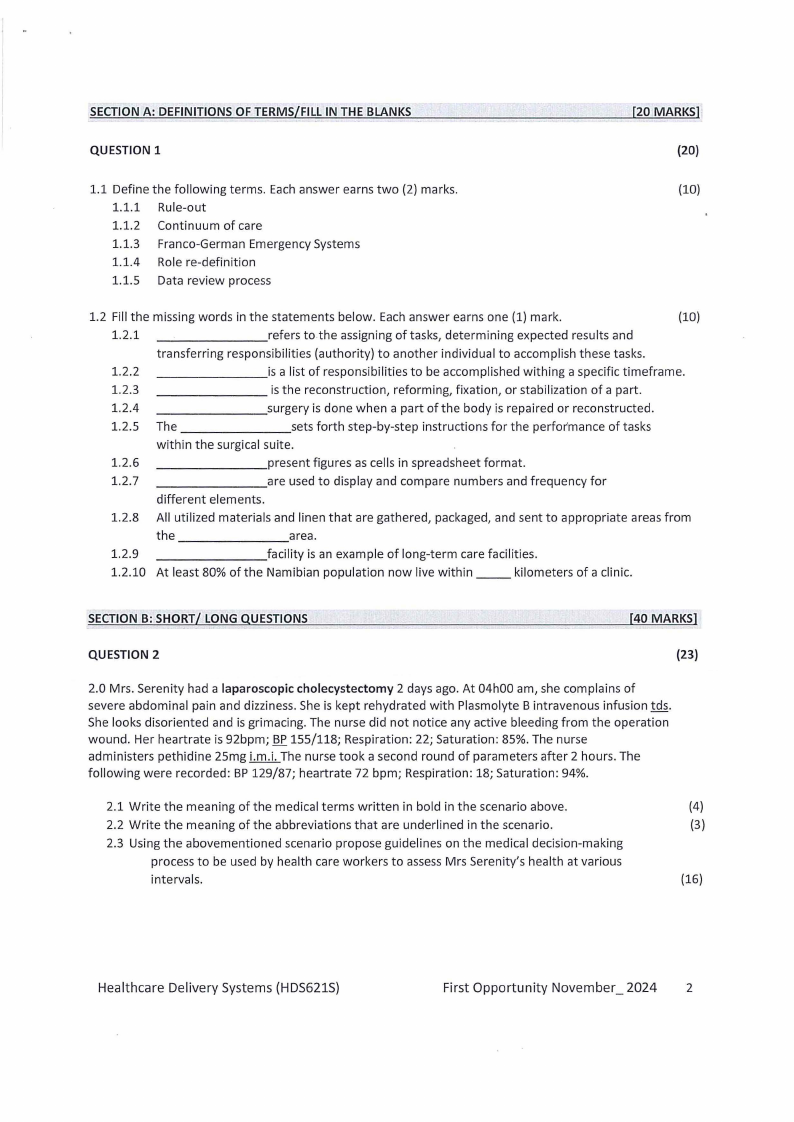 1.1 Define the following terms. Each answer earns two (2) marks.