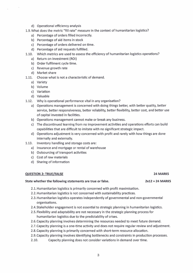 1.10. Which metrics are used to assessthe efficiency of humanitarian logistics operations?