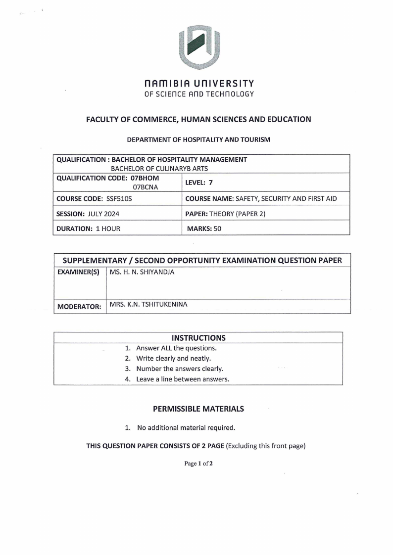 COURSE NAME: SAFETY,SECURITYAND FIRSTAID
