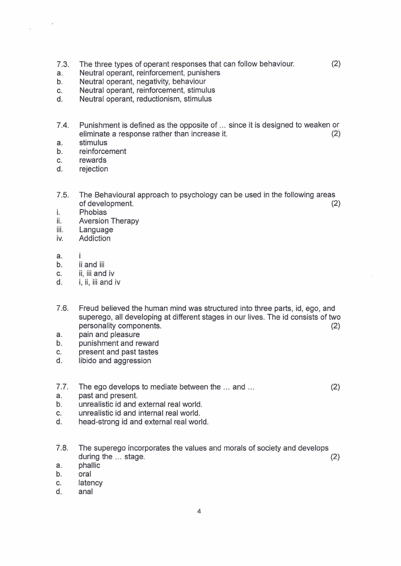 6.4. When evaluating the psychological dimension, the counsellor uses