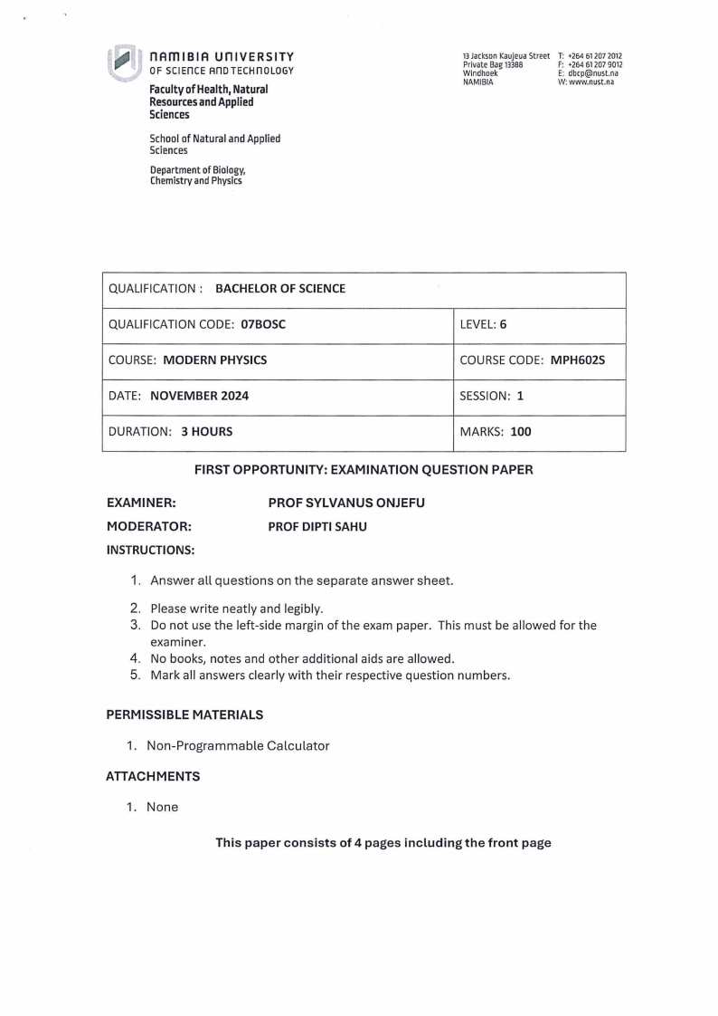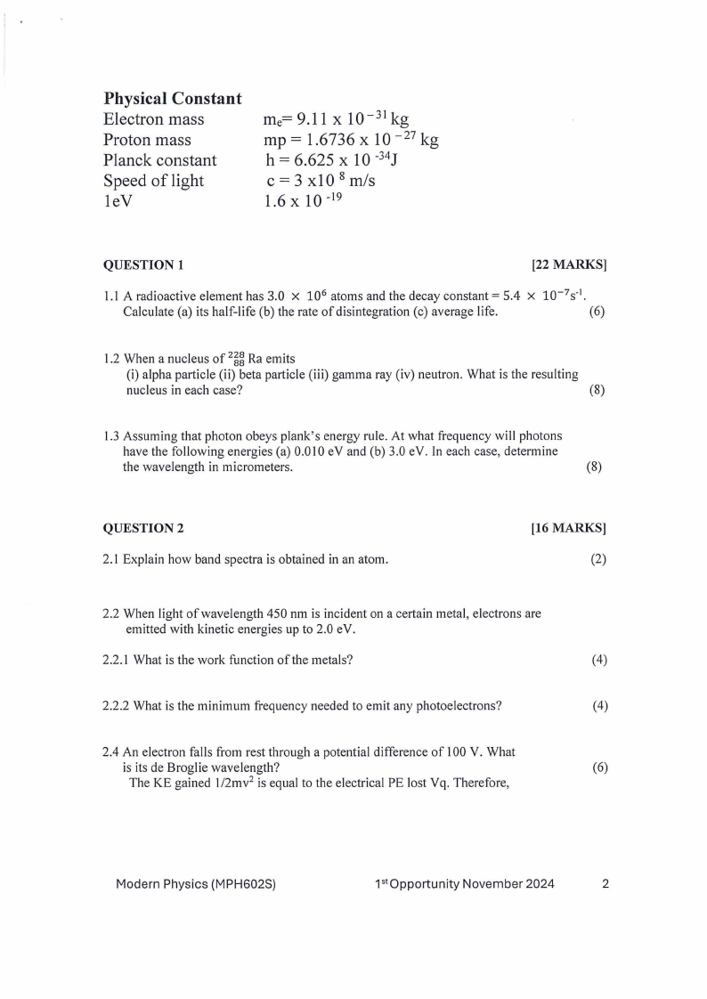 2.2 When light of wavelength 450 nm is incident on a ce11ain metal, electrons are