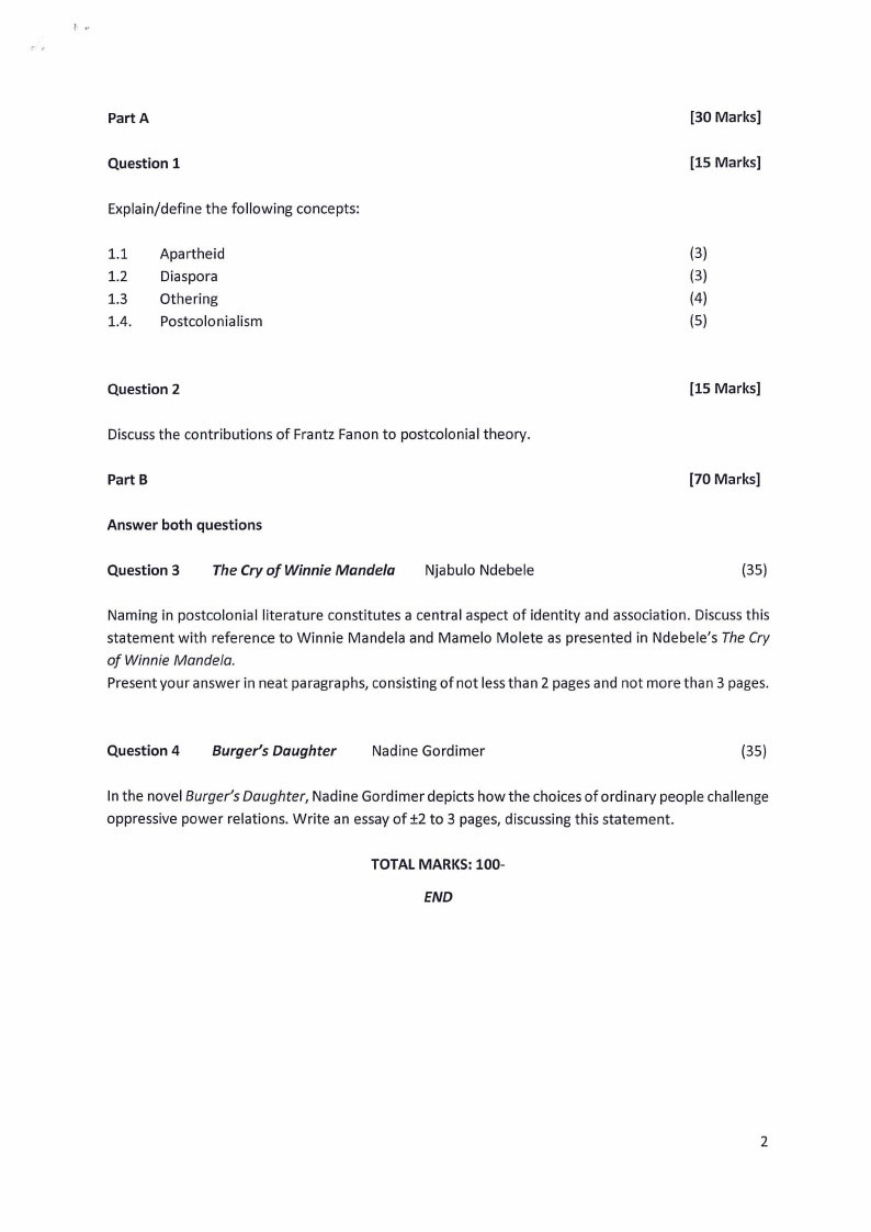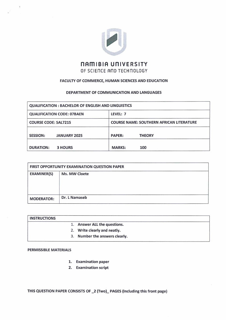COURSENAME: SOUTHERN AFRICAN LITERATURE