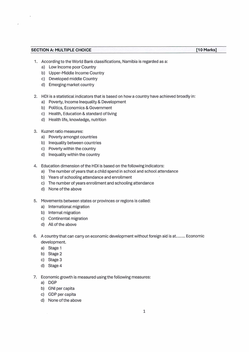 1. According to the World Bank classifications, Namibia is regarded as a: