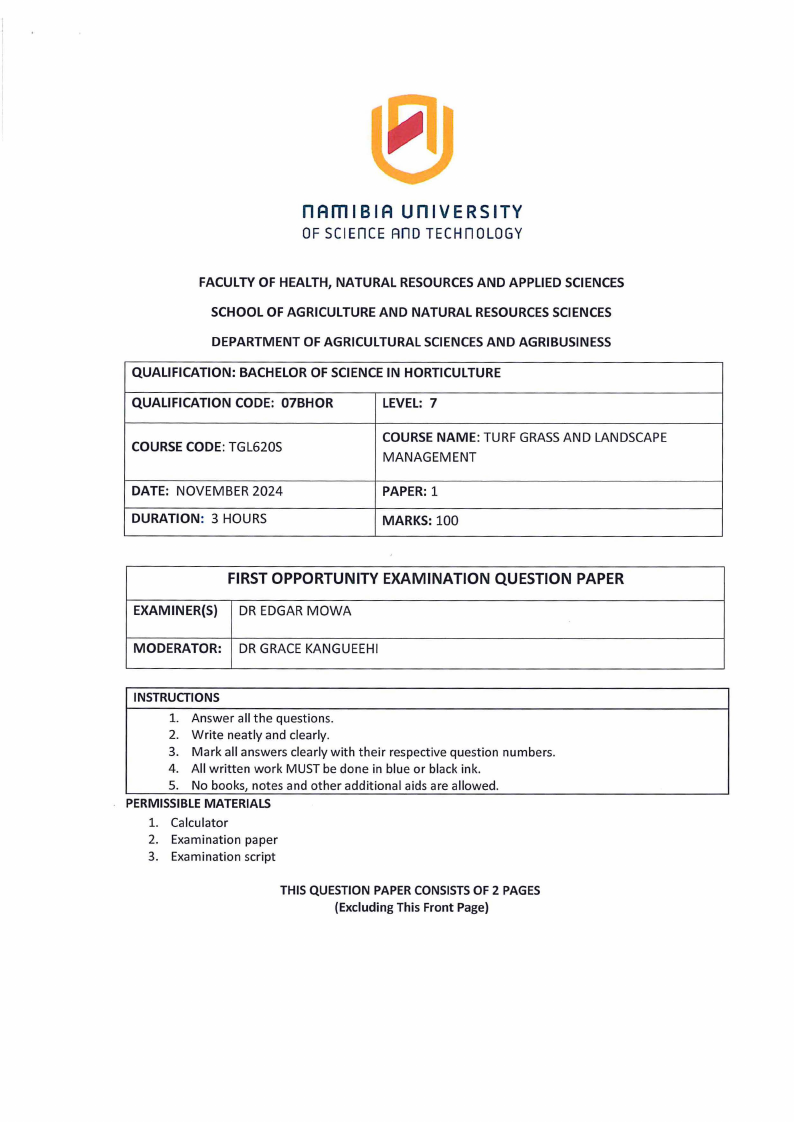 QUALIFICATION: BACHELOROF SCIENCEIN HORTICULTURE