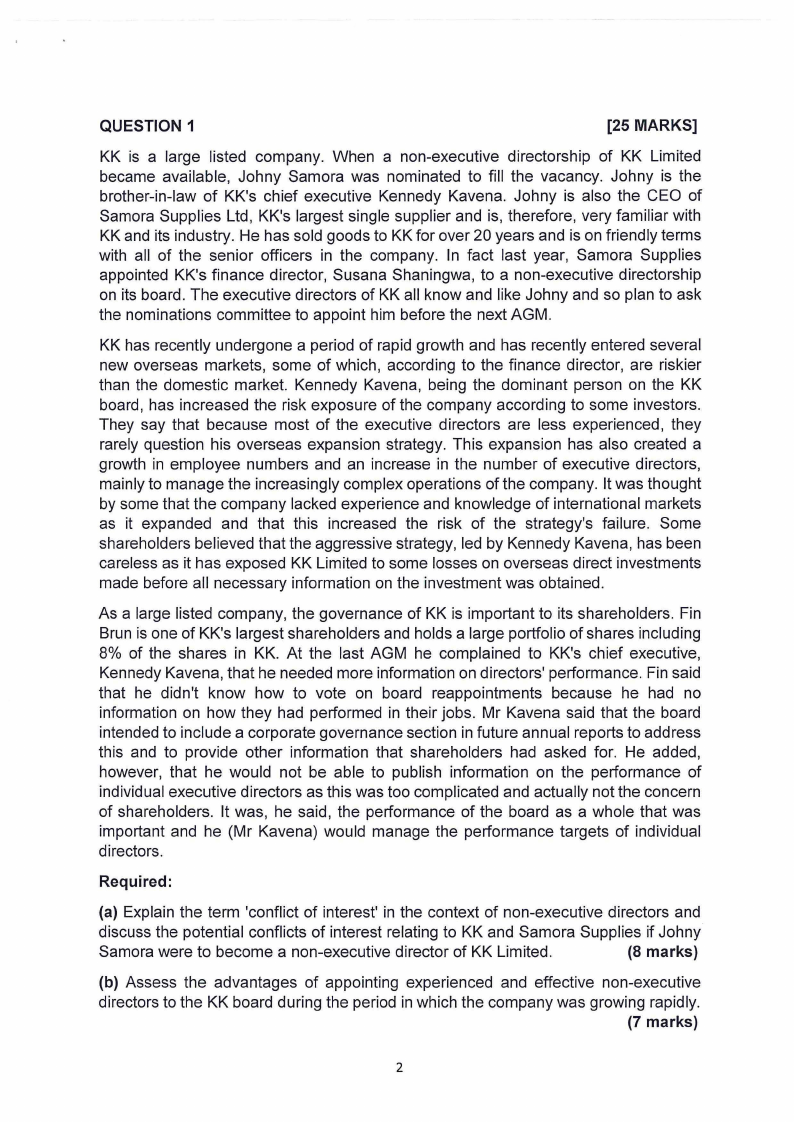 KK is a large listed company. When a non-executive directorship of KK Limited