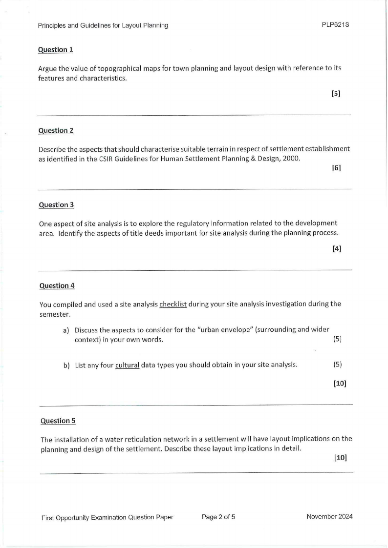 (c) Provide a checklist of the physical characteristics a human settlement will display if it's