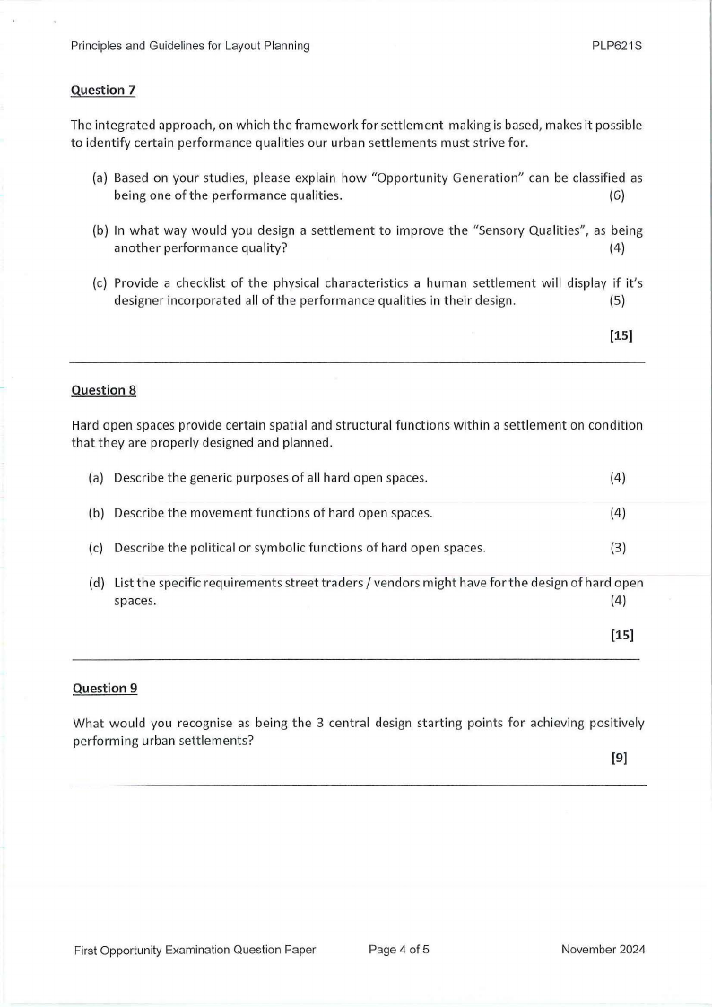 (b) In what way would you design a settlement to improve the "Sensory Qualities", as being