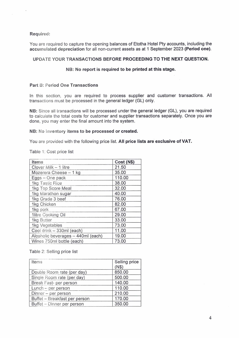 You are provided with the following list of account balances for Etotha Hotel Pty, as at 1