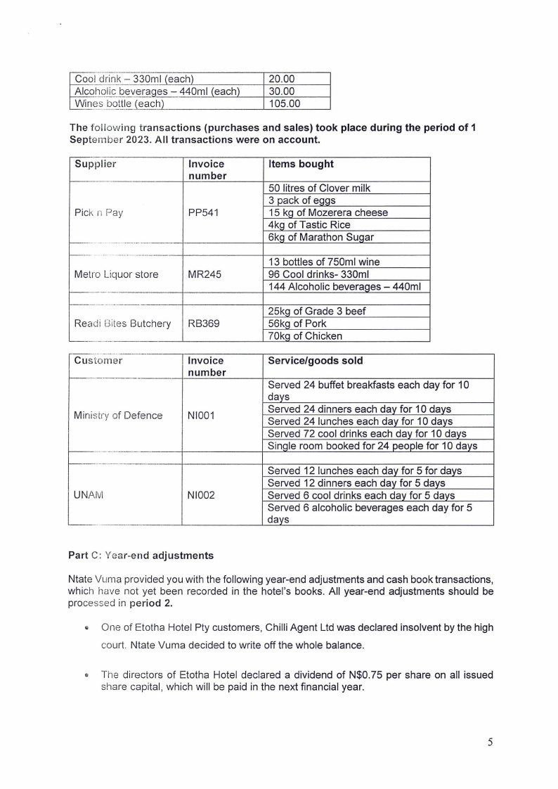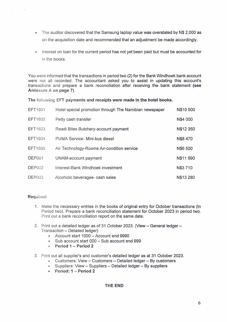 Since its inception, Etotha Hotel's accounting records have been recorded on the Quick Books