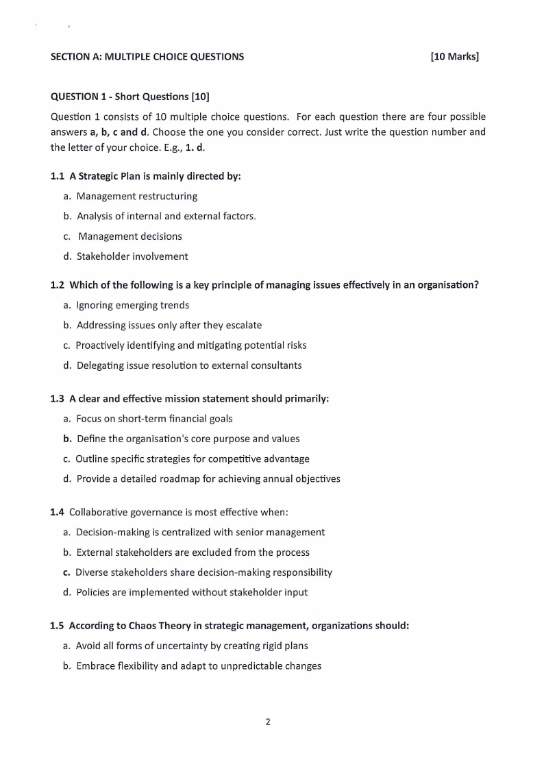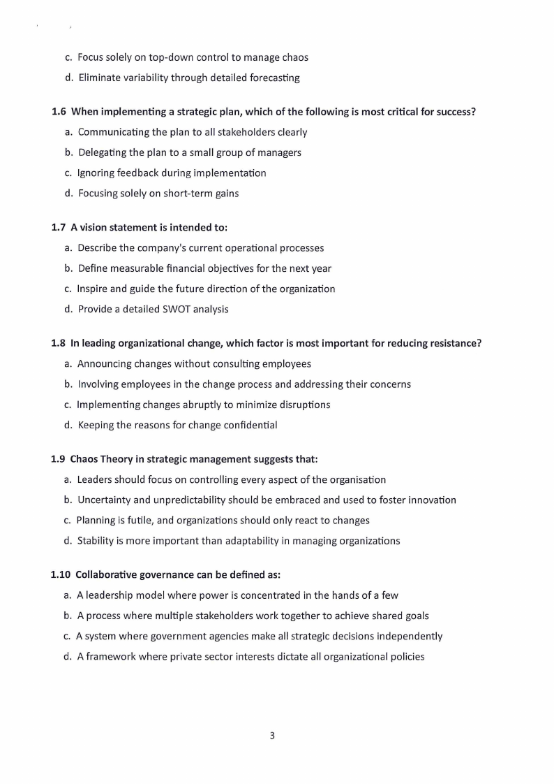 1.6 When implementing a strategic plan, which of the following is most critical for success?
