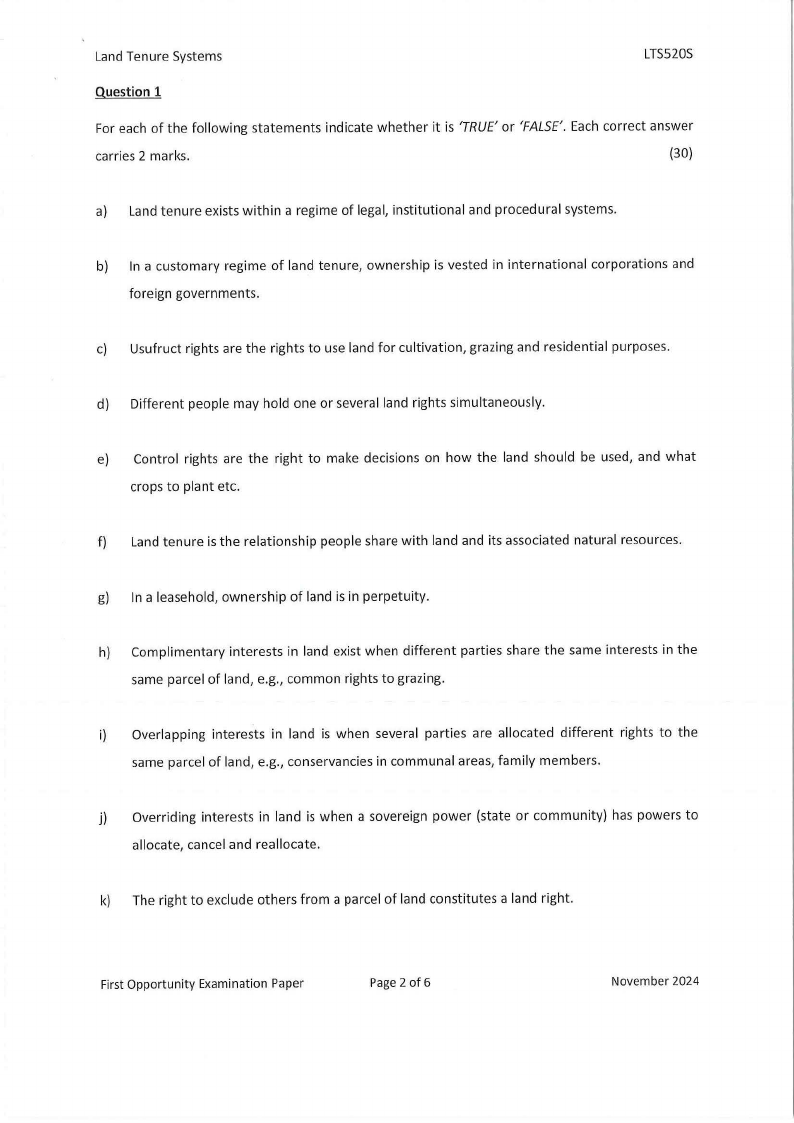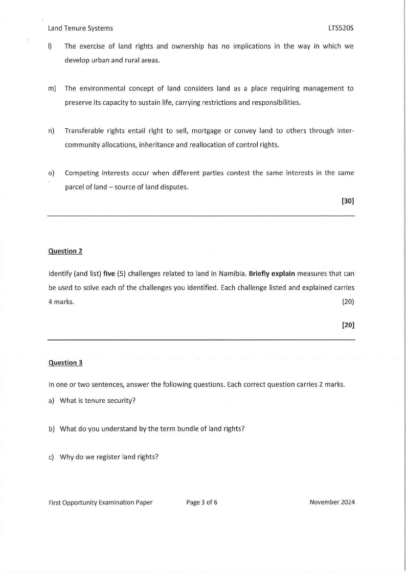 LTS520S - LAND TENURE SYSTEMS - 1ST OPP - NOV 2024