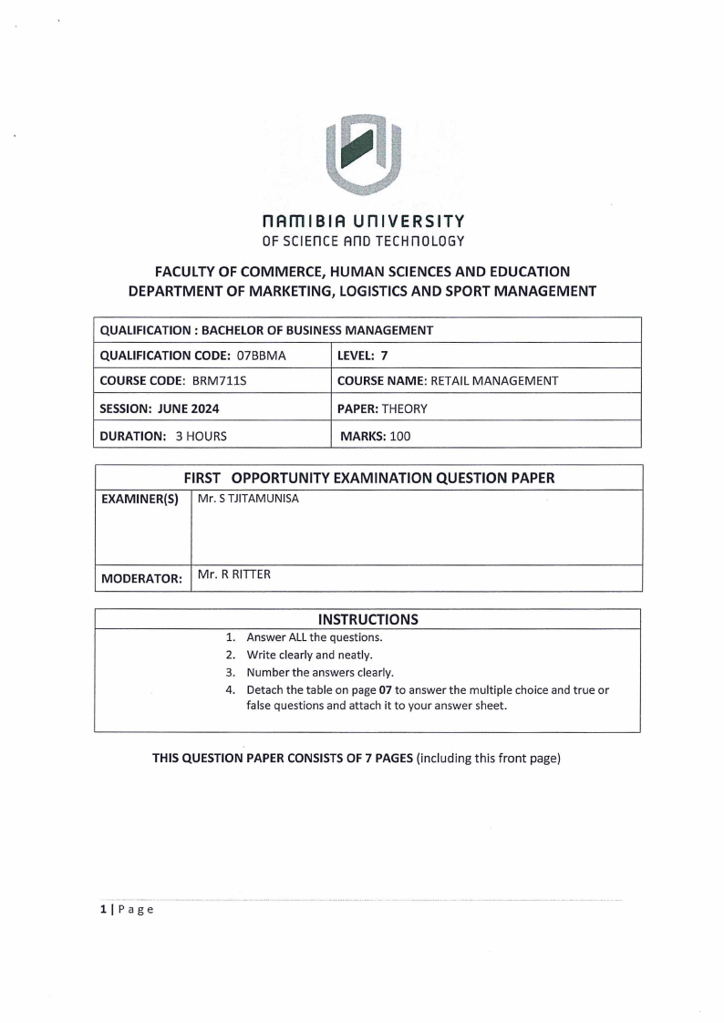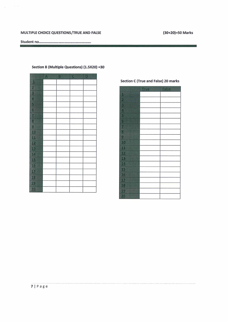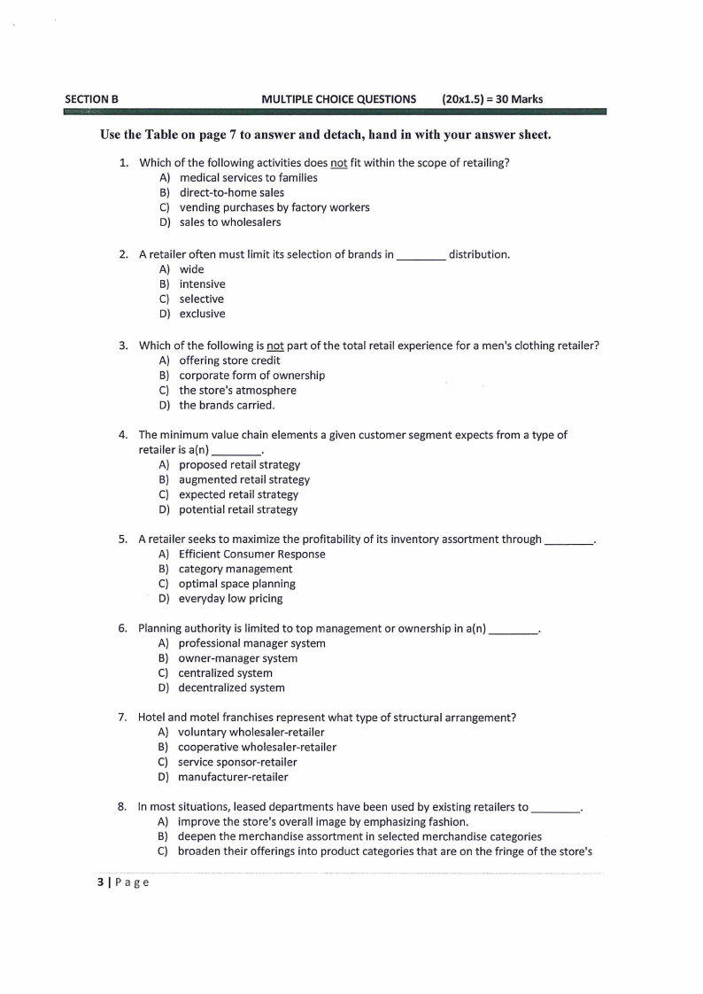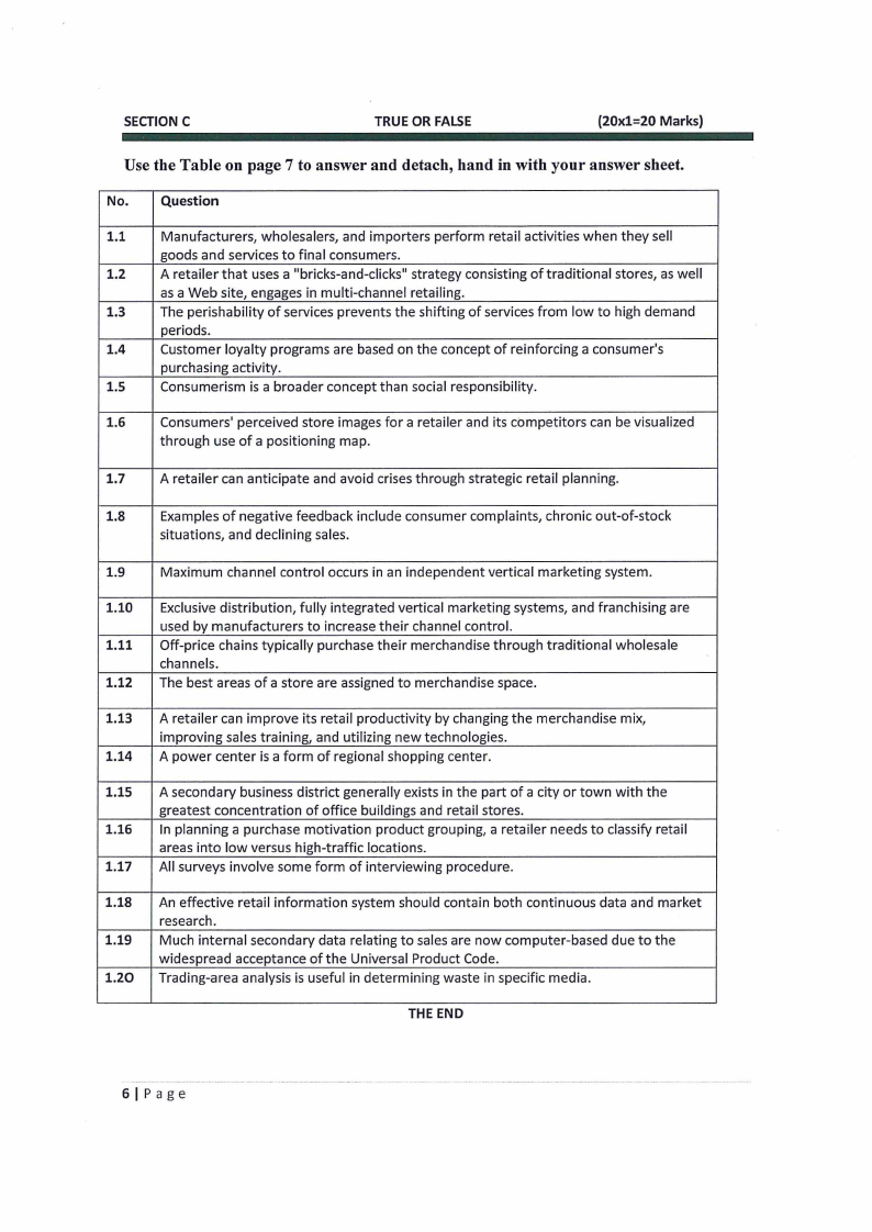 Use the Table on page 7 to answer and detach, hand in with your answer sheet.