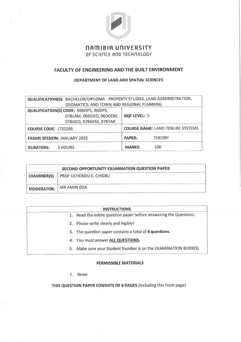 LTS520S - LAND TENURE SYSTEMS - 2ND OPP - JAN 2025