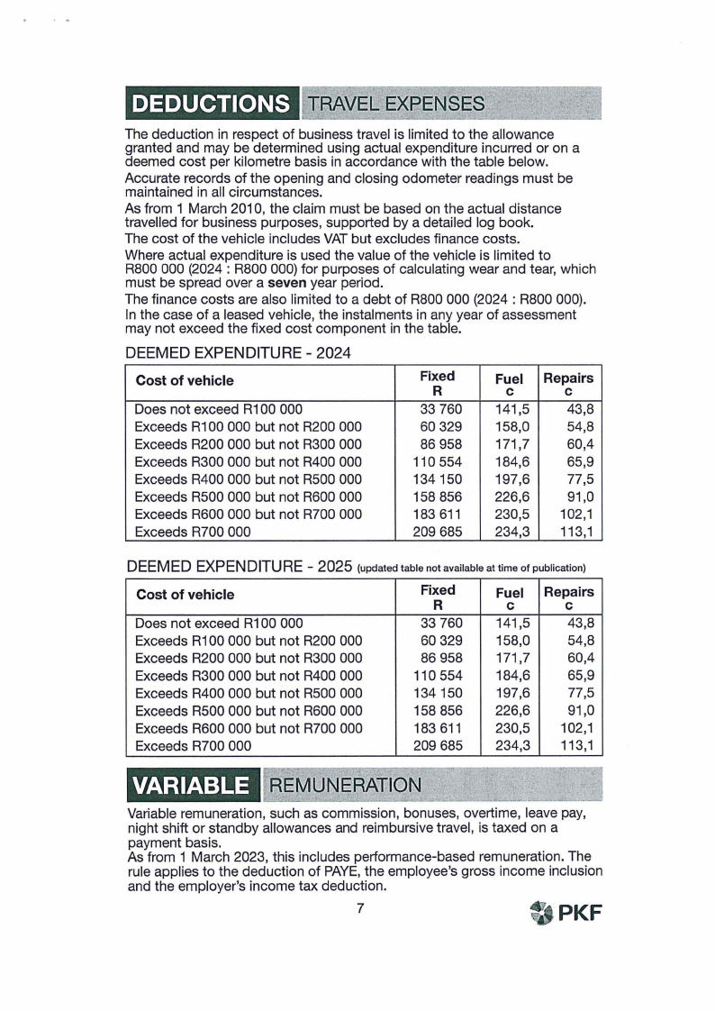 DEEMED EXPENDITURE - 2025 (updated table not available at time of publication)