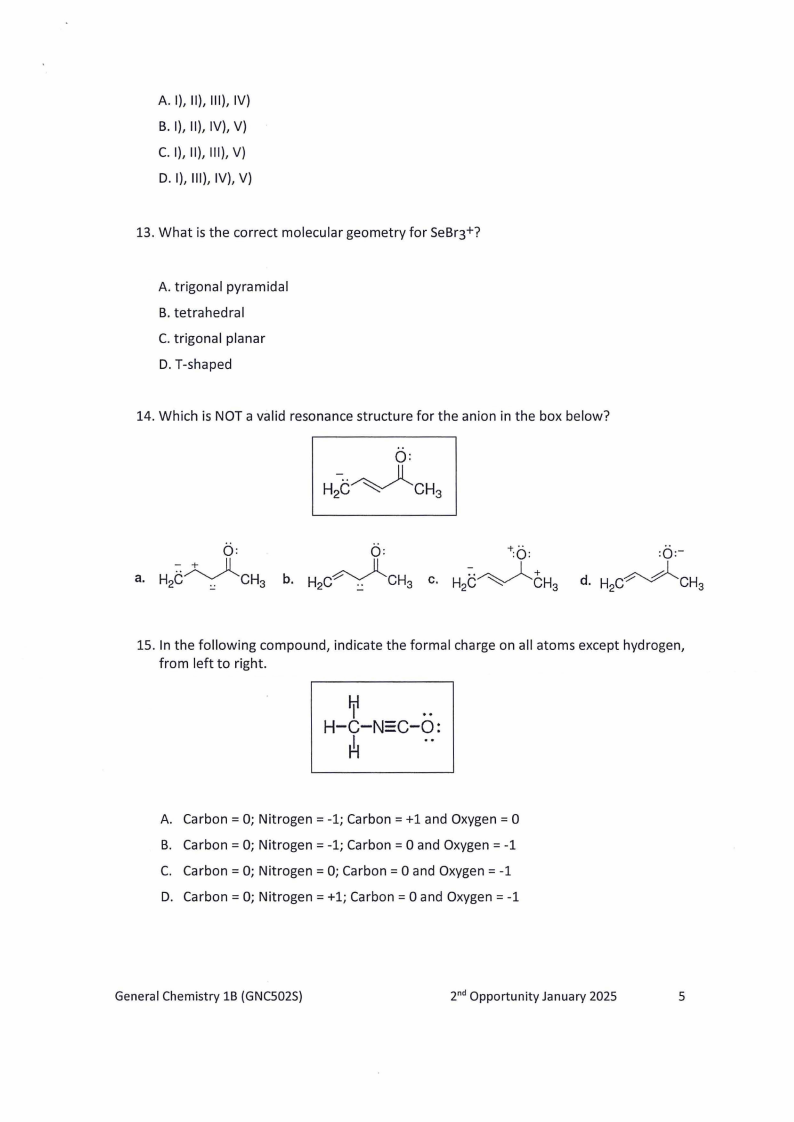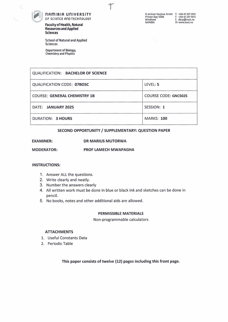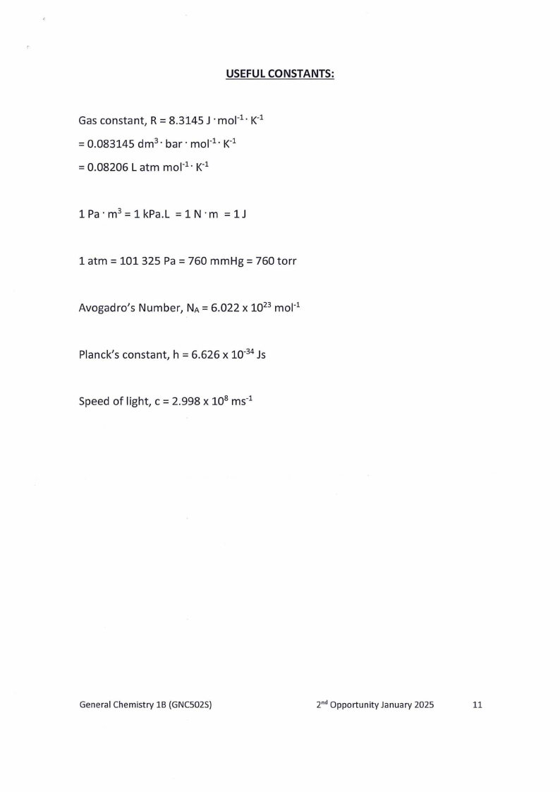 GNC502S - GENERAL CHEMISTRY 1B - 2ND OPP - JANUARY 2025 |