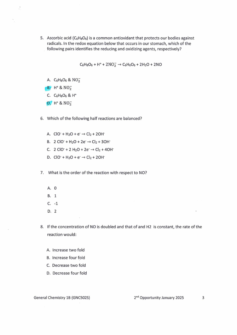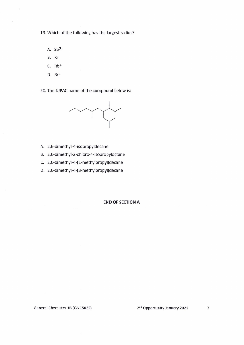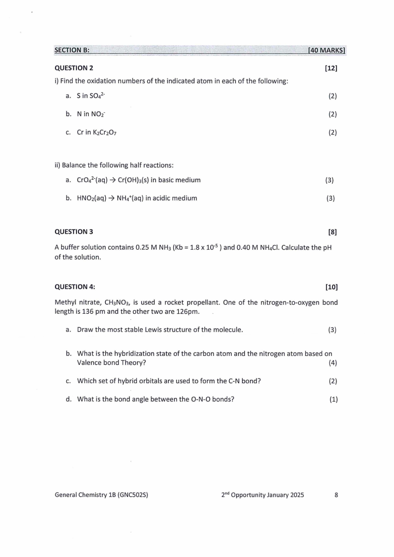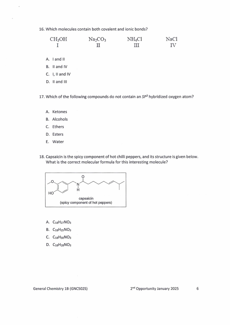 GNC502S - GENERAL CHEMISTRY 1B - 2ND OPP - JANUARY 2025 |