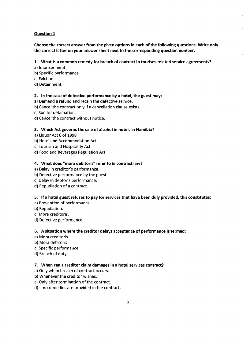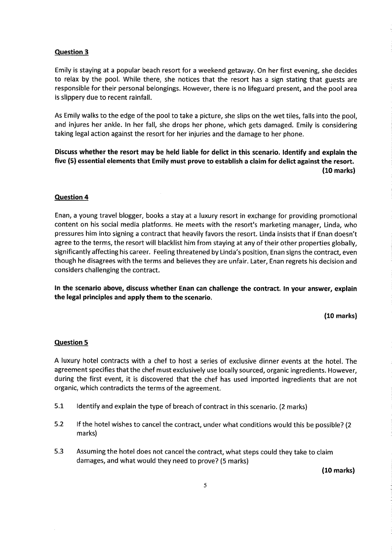 HTL510S - HOSPITALITY AND TOURISM LAW - 2ND OPP - JANUARY 2025 |