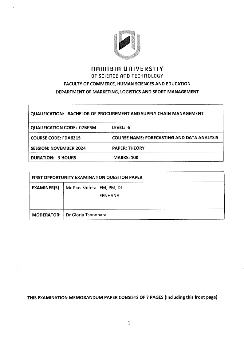 FDA621S - FORECASTING AND DATA ANALYSIS - 1ST OPP - NOVEMBER 2024