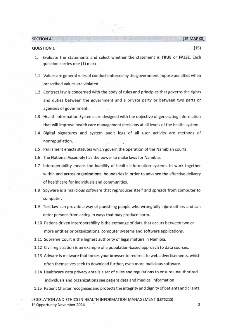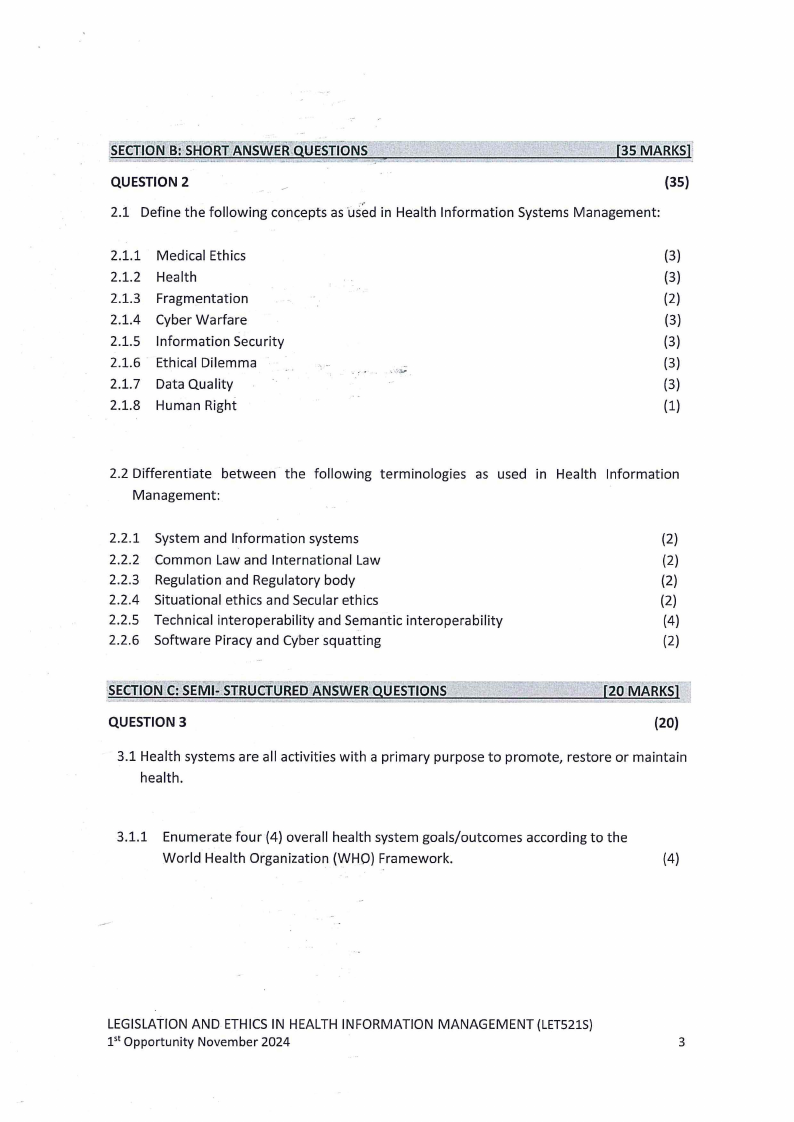 LEGISLATIONAND ETHICSIN HEALTH INFORMATION MANAGEMENT (LET521S)