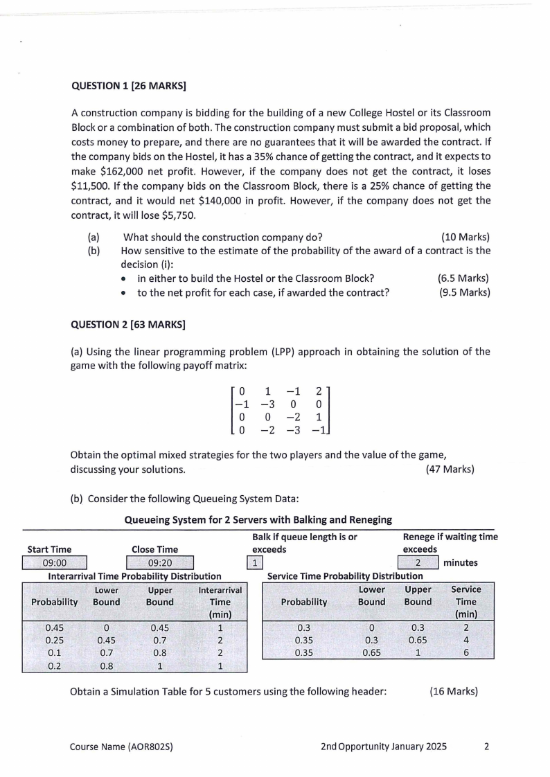 (a) Using the linear programming problem (LPP) approach in obtaining the solution of the