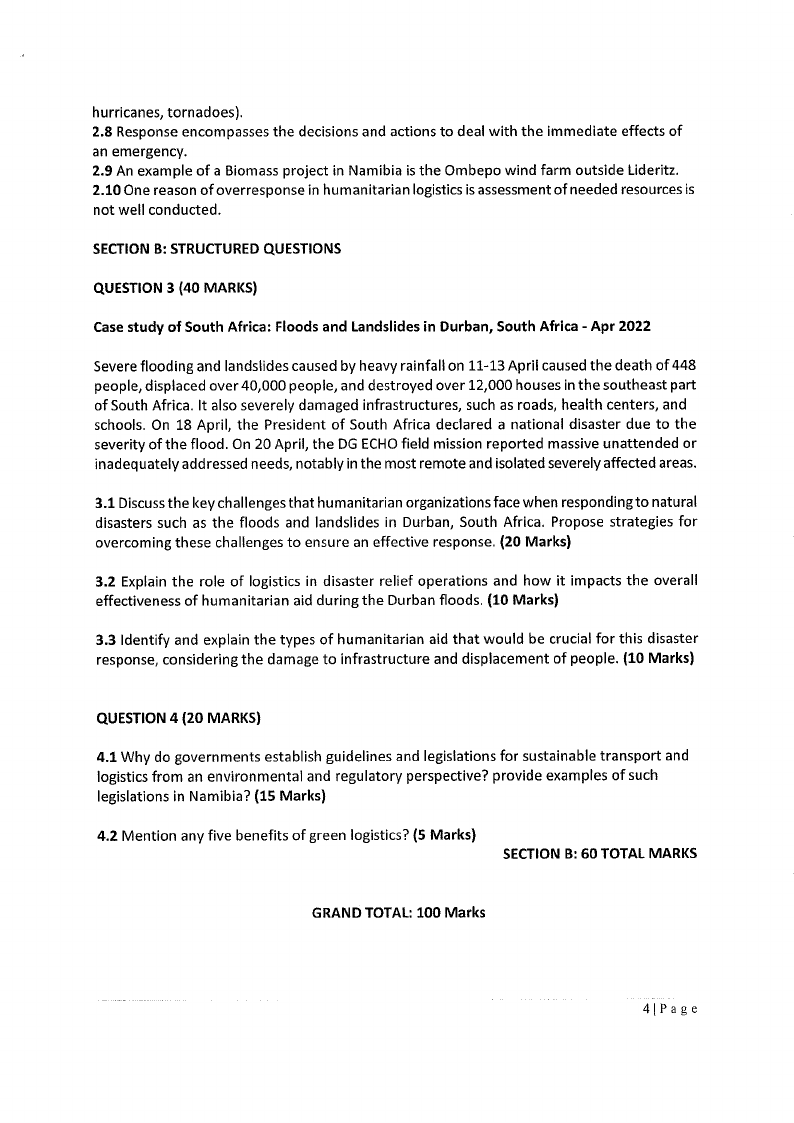 EHL621S - ENVIRONMENTAL AND HUMANITARIAN LOGISTICS - 1ST OPP - NOVEMBER 2024
