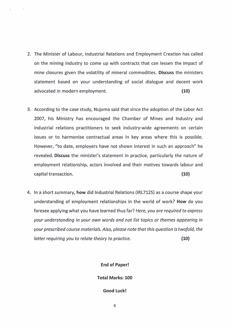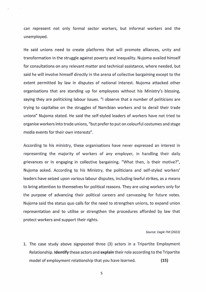 1. The case study above signposted three (3) actors in a Tripartite Employment