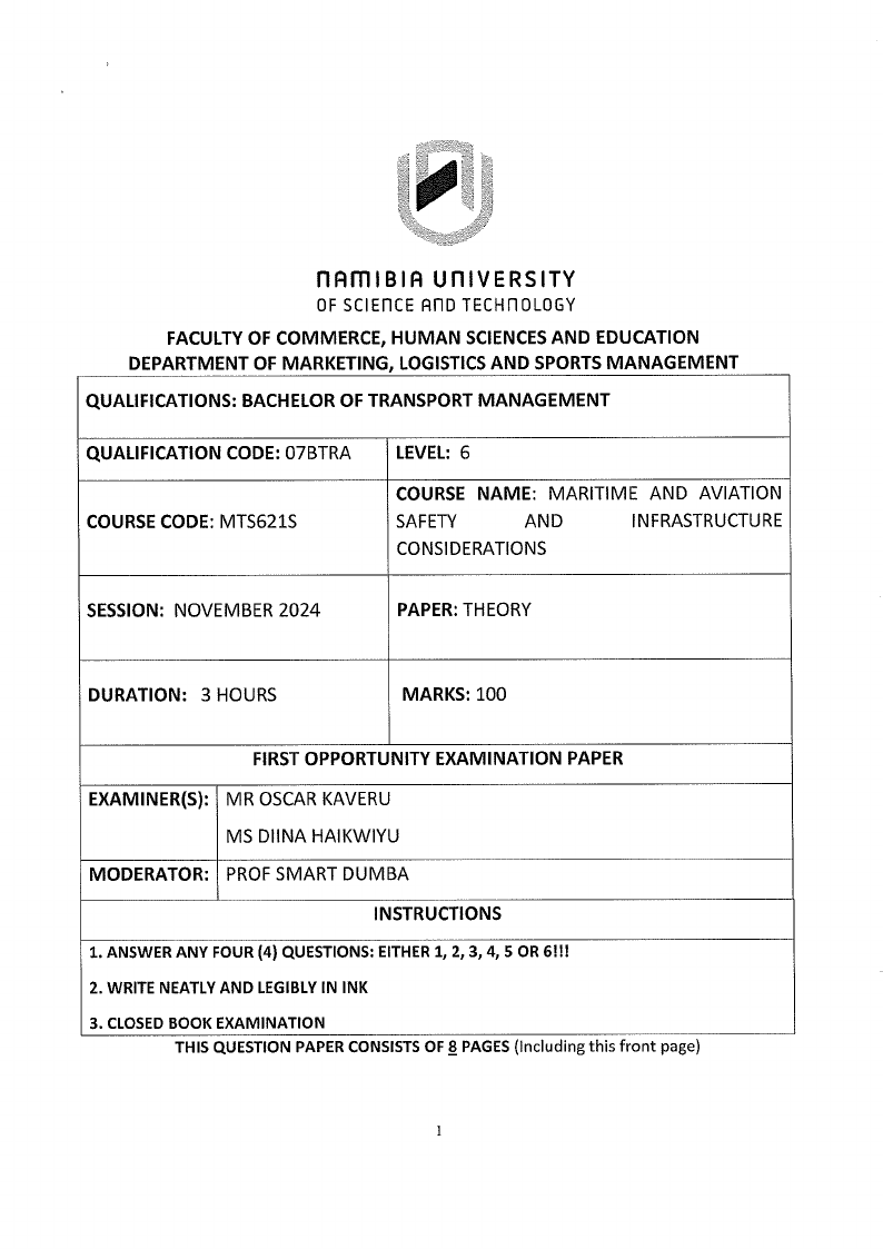 MTS621S - MARITIME AND AVIATION SAFETY AND INFRASTRUCTURE CONSIDERATION - 1ST OPP - NOVEMBER 2024 |