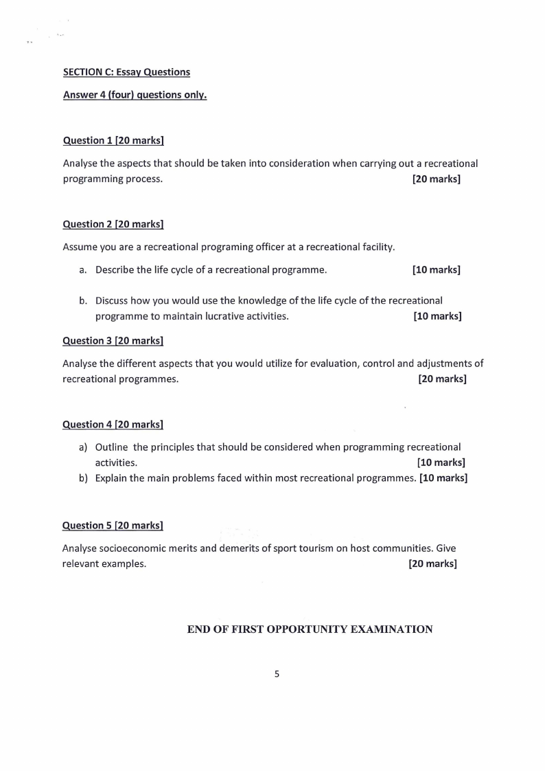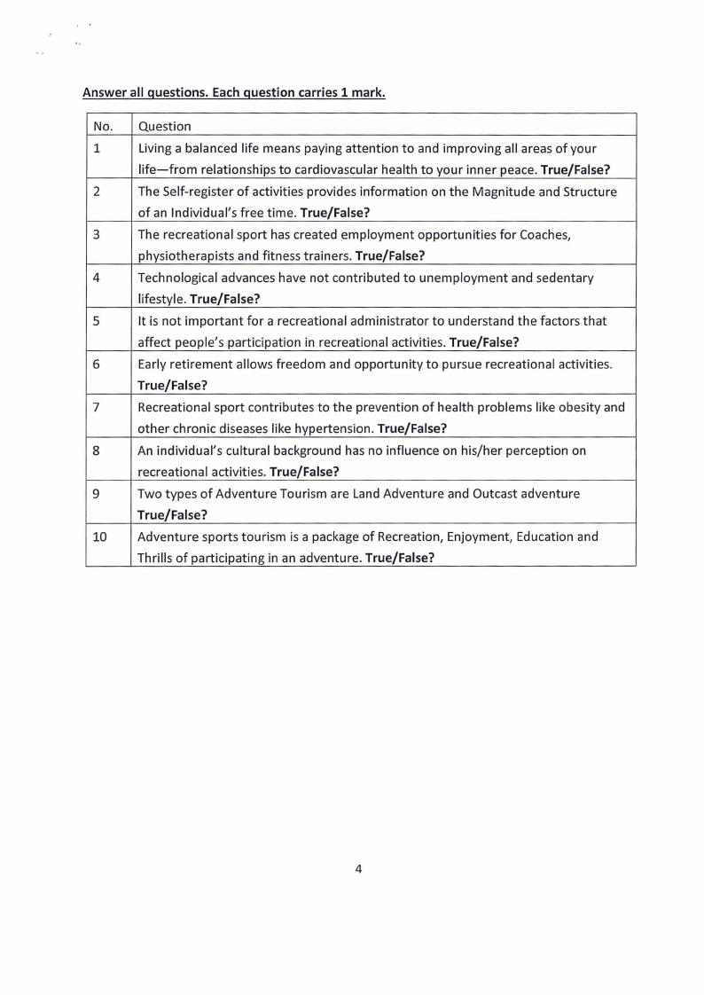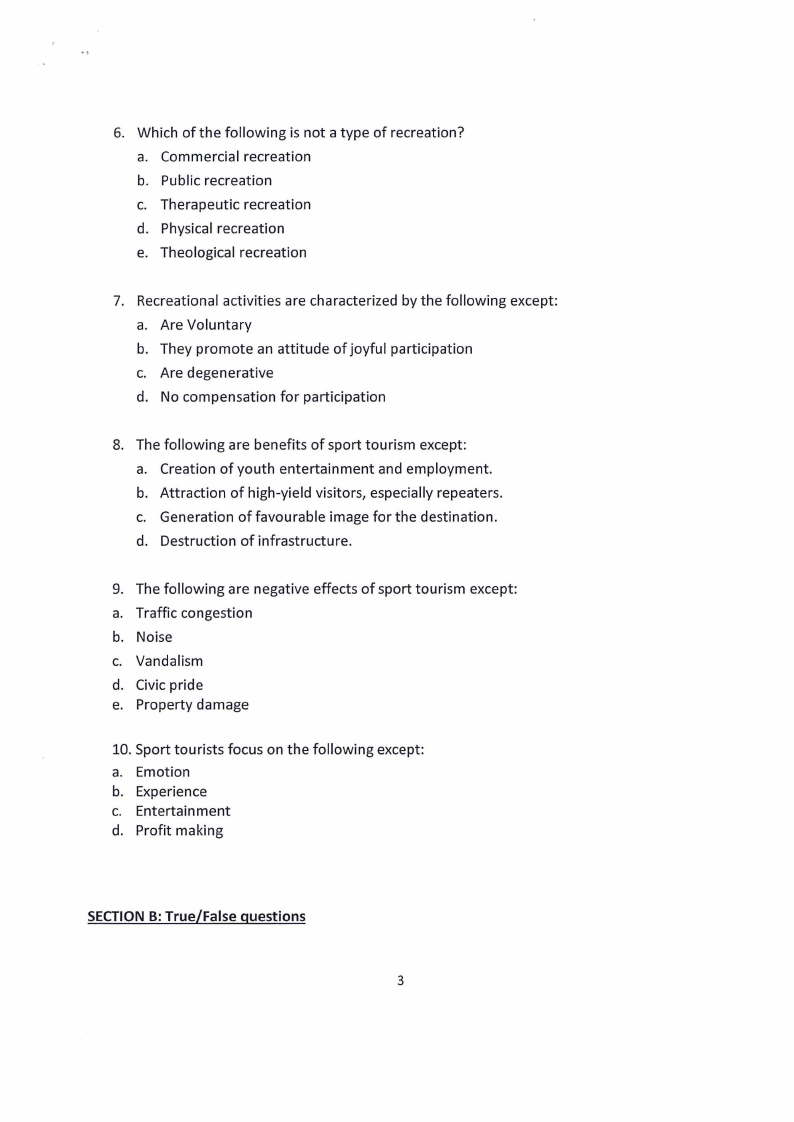 recreational activities. True/False?