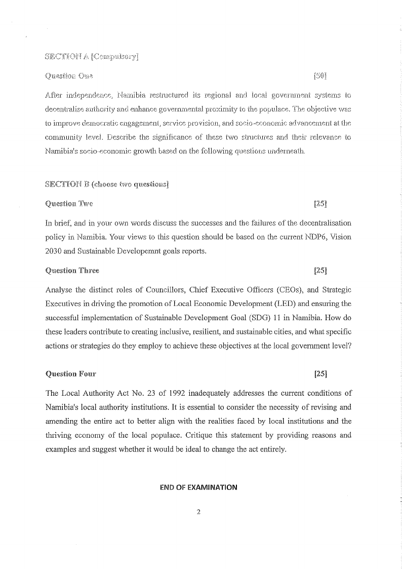 policy in Namibia. Your views to this question should be based on the current NDP6, Vision