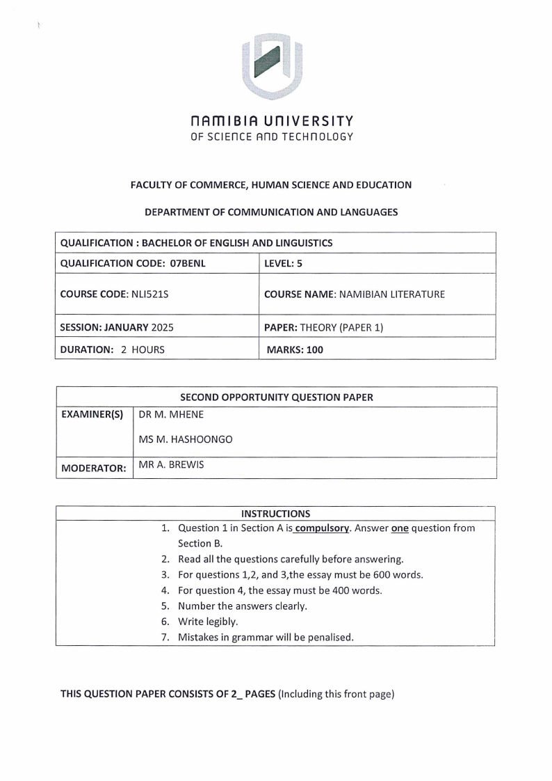 THIS QUESTION PAPER CONSISTS OF 2_ PAGES {Including this front page)