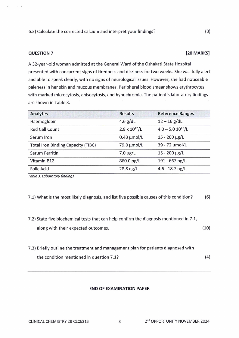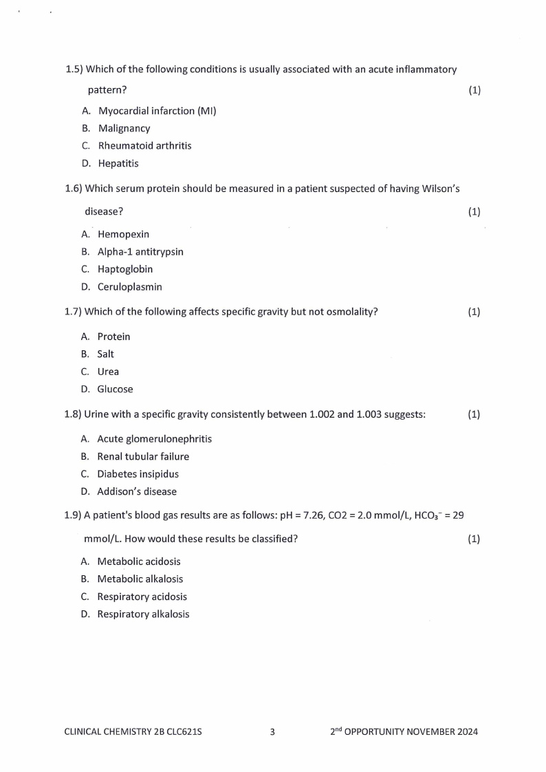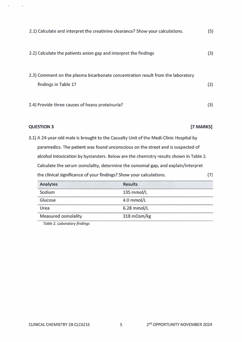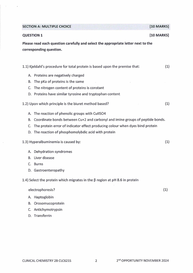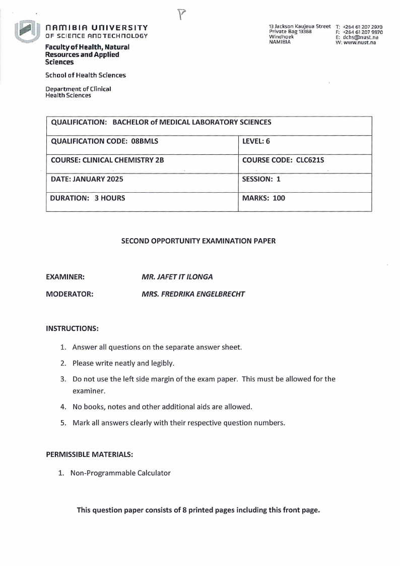 CLC621S - CLINICAL CHEMISTRY 2B - 2ND OPP - JANUARY 2025 |