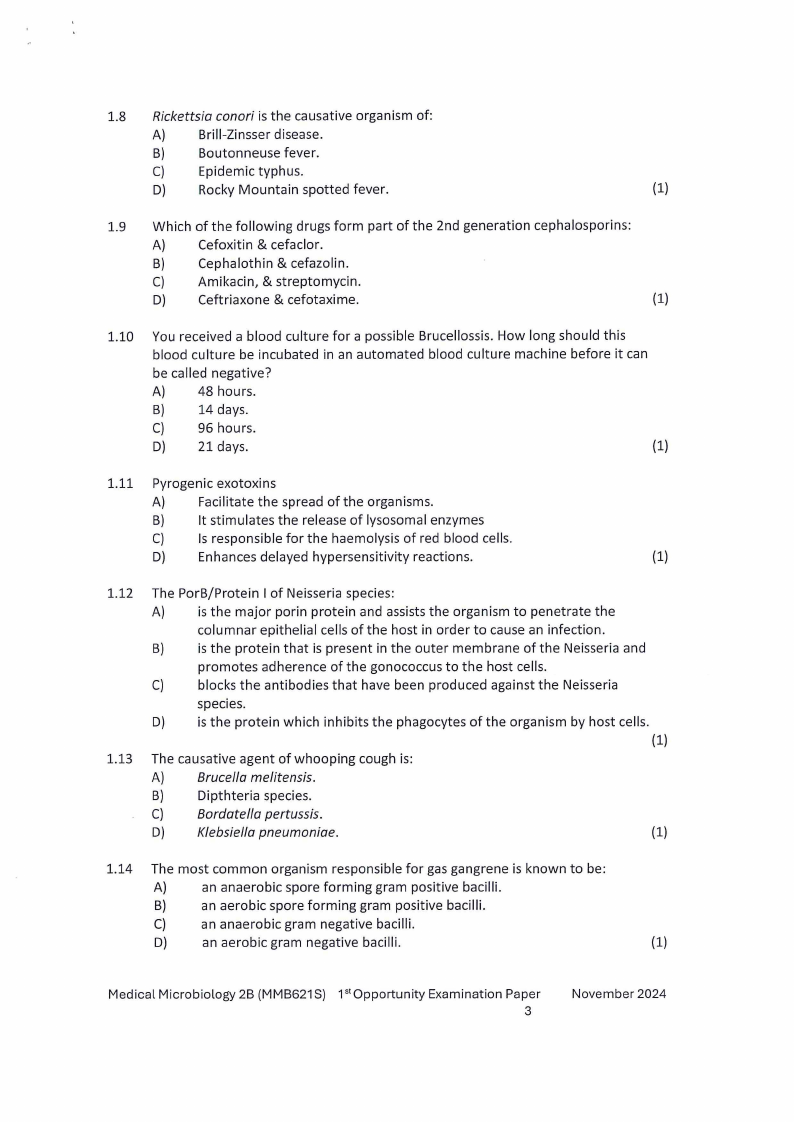 MMB621S - MEDICAL MICROBIOLOGY 2B - 1ST OPP -NOVEMBER 2024 |