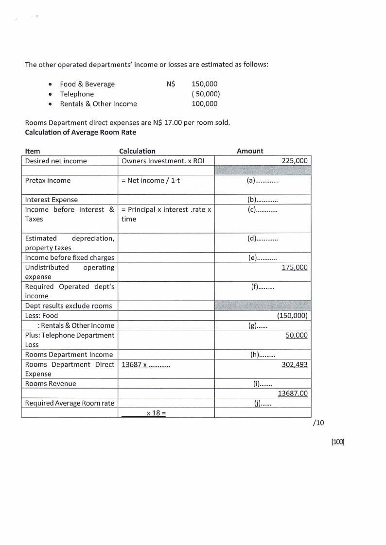 The owners desire a 15 % annual return on their investment. 75% occupancy is estimated: thus 13,687