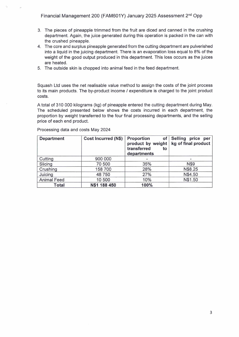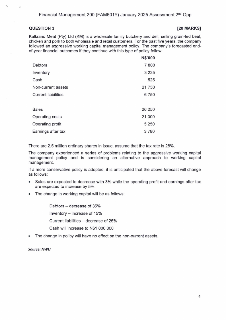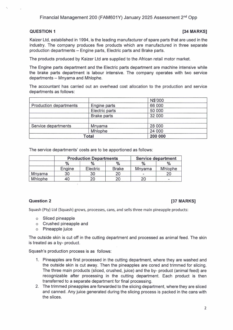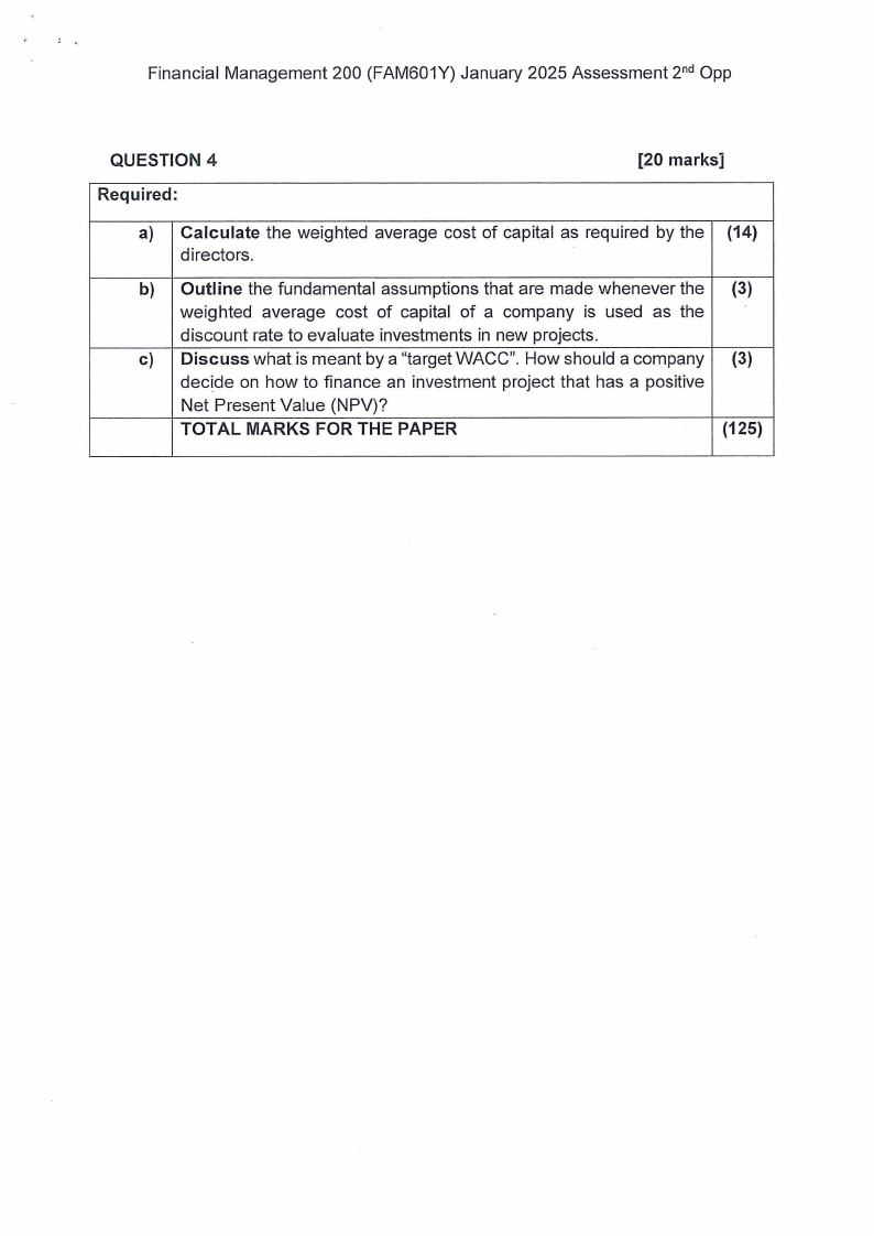 Financial Management 200 (FAM601Y) January 2025 Assessment 2nd Opp