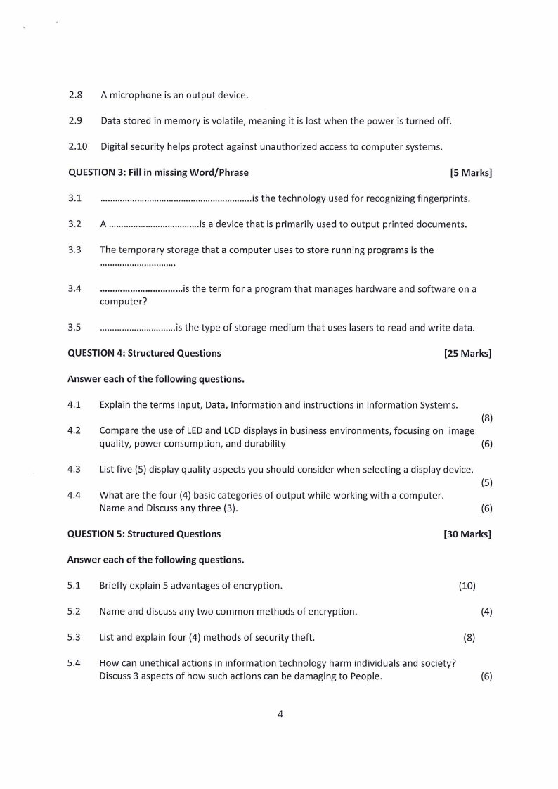 4.1 Explain the terms Input, Data, Information and instructions in Information Systems.