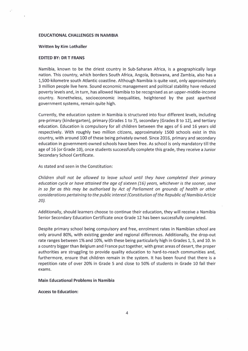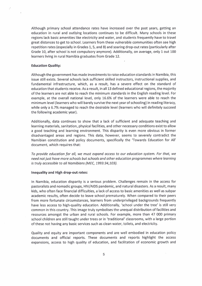 In Namibia, education disparity is a serious problem. Challenges remain in the access for