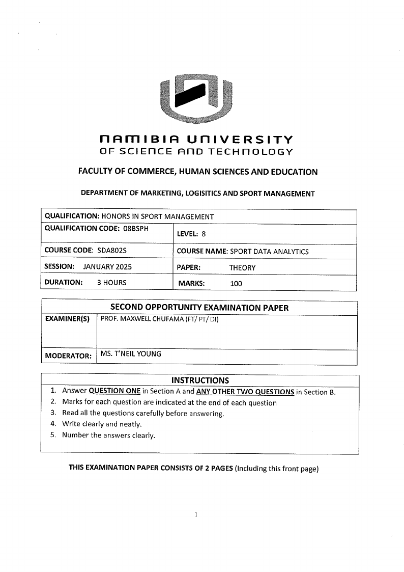 SDA802S - SPORT DATA ANALYTICS - 2ND OPP - JANUARY 2025