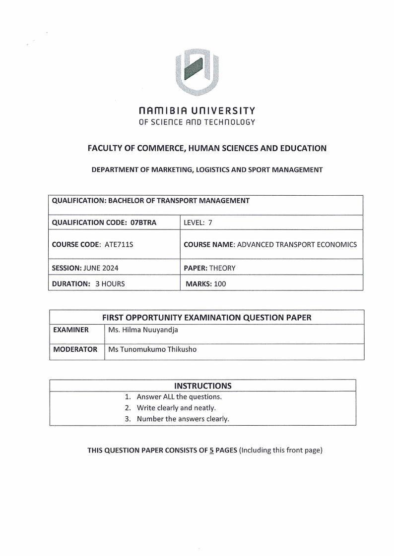 1. One way to address negative externalities in transport is to impose a tax or fee on the users