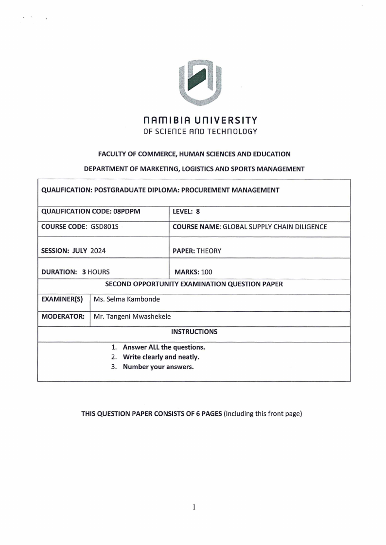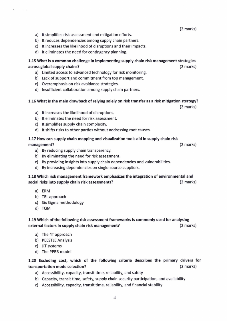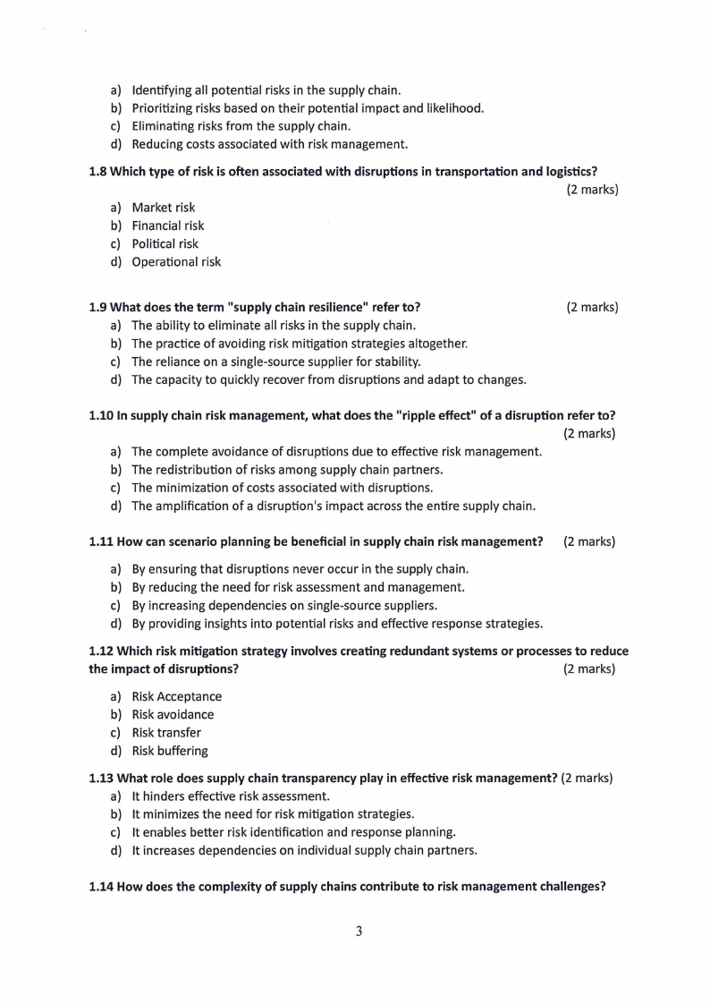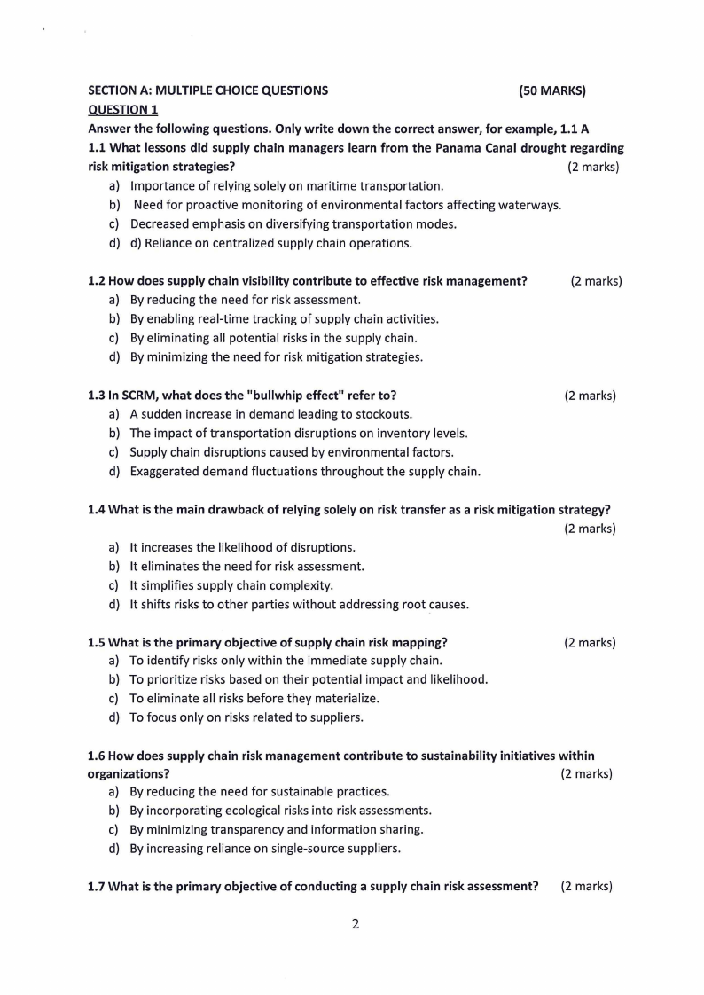 1.7 What is the primary objective of conducting a supply chain risk assessment? (2 marks)