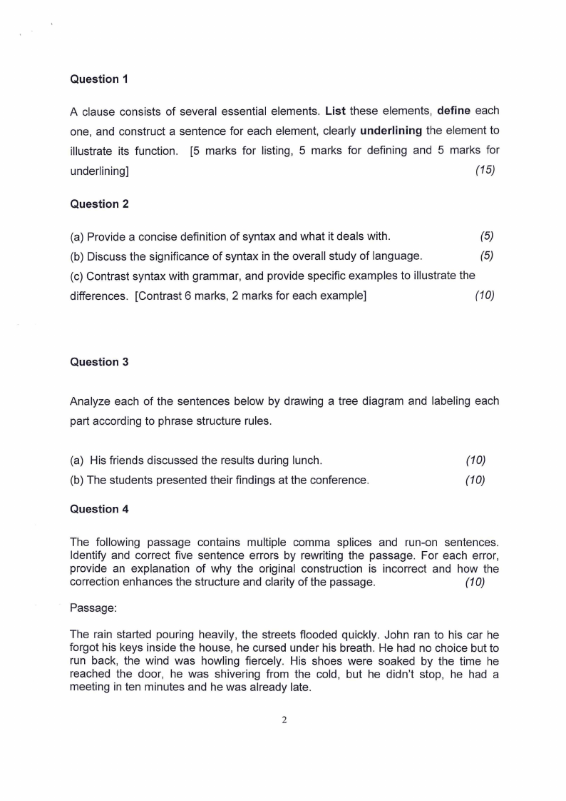 (c) Contrast syntax with grammar, and provide specific examples to illustrate the